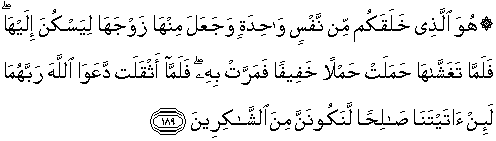 189. Dialah Yang menciptakan kamu dari diri yang satu dan dari