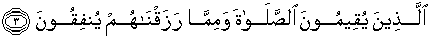 3. (yaitu) orang-orang yang mendirikan shalat dan yang menafkahkan sebagian dari rezki yang Kami berikan kepada mereka.