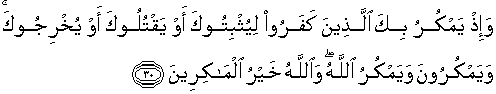 30. Dan (ingatlah), ketika orang-orang kafir (Quraisy) memikirkan