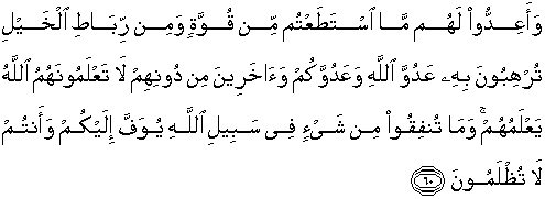 60. Dan siapkanlah untuk menghadapi mereka kekuatan apa saja yang