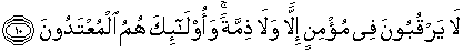10. Mereka tidak memelihara (hubungan) kerabat terhadap orang-orang mukmin dan tidak (pula mengindahkan) perjanjian. Dan mereka itulah orang-orang yang melampaui batas.