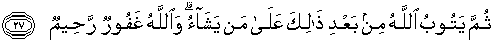 27. Sesudah itu Allah menerima taubat dari orang-orang yang dikehendakiNya. Allah Maha Pengampun lagi Maha Penyayang.
