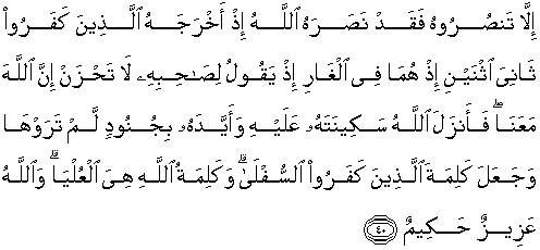 40. Jikalau kamu tidak menolongnya (Muhammad) maka sesungguhnya Allah
