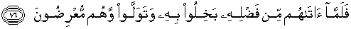 76. Maka setelah Allah memberikan kepada mereka sebahagian dari karunia-Nya, mereka kikir dengan karunia itu, dan berpaling, dan mereka memanglah orang-orang yang selalu membelakangi (kebenaran).