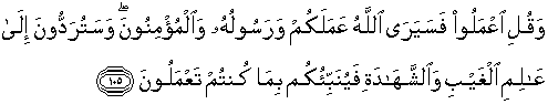105. Dan Katakanlah: "Bekerjalah kamu, maka Allah dan Rasul-Nya serta