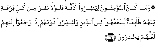 122. Tidak sepatutnya bagi mukminin itu pergi semuanya (ke medan
