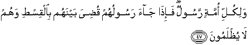 47. Tiap-tiap umat mempunyai rasul; maka apabila telah datang rasul mereka, diberikanlah keputusan antara mereka