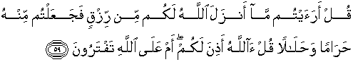 59. Katakanlah: "Terangkanlah kepadaku tentang rezki yang