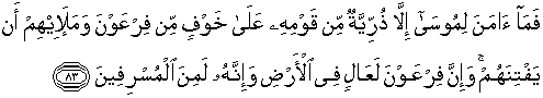 83. Maka tidak ada yang beriman kepada Musa, melainkan