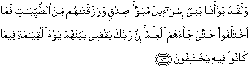 93. Dan sesungguhnya Kami telah menempatkan Bani Israil di