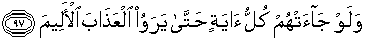 97. meskipun datang kepada mereka segala macam keterangan, hingga mereka menyaksikan azab yang pedih.