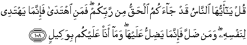 108. Katakanlah: "Hai manusia, sesungguhnya teIah datang kepadamu