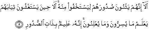 5. Ingatlah, sesungguhnya (orang munafik itu) memalingkan dada mereka untuk