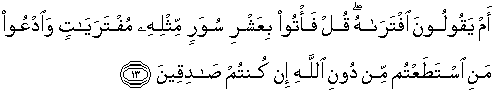 Katakanlah: "(Kalau demikian), maka datangkanlah sepuluh surat-surat yang