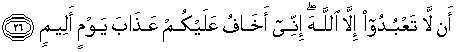26. agar kamu tidak menyembah selain Allah. Sesungguhnya aku takut kamu akan ditimpa azab (pada) hari yang sangat menyedihkan."