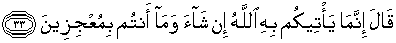 33. Nuh menjawab: "Hanyalah Allah yang akan mendatangkan azab itu kepadamu jika Dia menghendaki, dan kamu sekali-kali tidak dapat melepaskan diri.