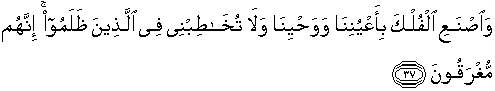 37. Dan buatlah bahtera itu dengan pengawasan dan petunjuk wahyu Kami, dan janganlah kamu bicarakan dengan Aku tentang orang-orang yang zalim itu; sesungguhnya mereka itu akan ditenggelamkan.