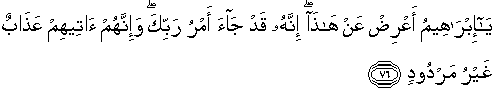 76. Hai Ibrahim, tinggalkanlah soal jawab ini, sesungguhnya telah datang ketetapan Tuhanmu, dan sesungguhnya mereka itu akan didatangi azab yang tidak dapat ditolak.
