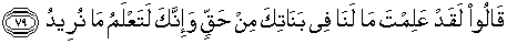 79. Mereka menjawab: "Sesungguhnya kamu telah tahu bahwa kami tidak mempunyai