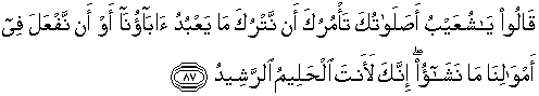 87. Mereka berkata: "Hai Syu'aib, apakah sembahyangmu menyuruh kamu agar kami