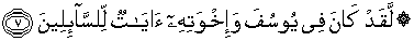 7. Sesungguhnya ada beberapa tanda-tanda kekuasaan Allah pada (kisah) Yusuf dan saudara-saudaranya bagi orang-orang yang bertanya.