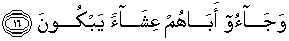 16. Kemudian mereka datang kepada ayah mereka di sore hari sambil menangis.