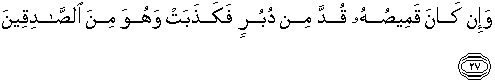 27. Dan jika baju gamisnya koyak di belakang, maka wanita itulah yang dusta, dan Yusuf termasuk orang-orang yang benar."