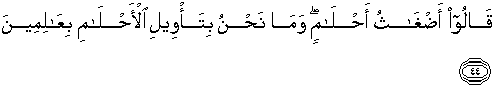 44. Mereka menjawab: "(Itu) adalah mimpi-mimpi yang kosong dan kami sekali-kali tidak tahu menta'birkan mimpi itu."