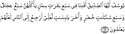 46. (Setelah pelayan itu berjumpa dengan Yusuf dia berseru):