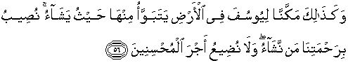 56. Dan demikianlah Kami memberi kedudukan kepada Yusuf di negeri