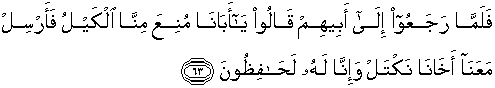 63. Maka tatkala mereka telah kembali kepada ayah mereka (Ya'qub)