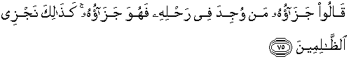 75. Mereka menjawab: "Balasannya, ialah pada siapa diketemukan