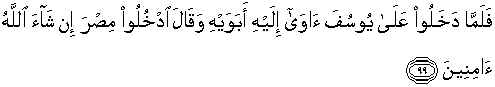 dan dia berkata: "Masuklah kamu ke negeri Mesir, insya Allah dalam keadaan aman."
