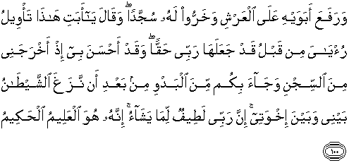 Yusuf. Dan berkata Yusuf: "Wahai ayahku inilah ta'bir