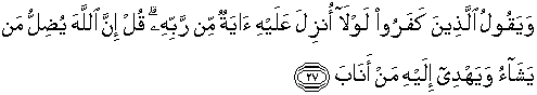 27. Orang-orang kafir berkata: "Mengapa tidak diturunkan kepadanya (Muhammad) tanda (mukjizat) dari Tuhannya?" Katakanlah: "Sesungguhnya Allah menyesatkan