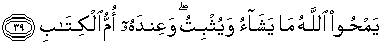 39. Allah menghapuskan apa yang Dia kehendaki dan menetapkan (apa yang Dia kehendaki), dan di sisi-Nya-lah terdapat Ummul-Kitab (Lauh mahfuzh).