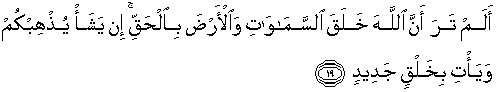19. Tidakkah kamu perhatikan, bahwa sesungguhnya Allah telah menciptakan langit dan bumi dengan hak
