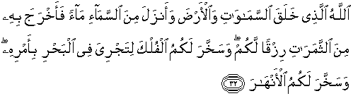 32. Allah-lah yang telah menciptakan langit dan bumi dan menurunkan