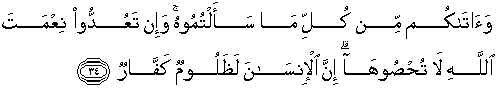 yang kamu mohonkan kepadanya. Dan jika kamu menghitung nikmat