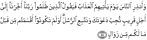 44. Dan berikanlah peringatan kepada manusia terhadap hari (yang