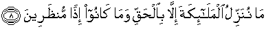 8. Kami tidak menurunkan malaikat melainkan dengan benar (untuk membawa azab) dan tiadalah mereka ketika itu diberi tangguh.
