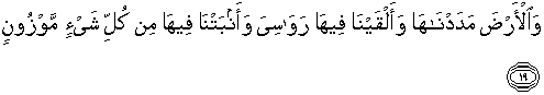 19. Dan Kami telah menghamparkan bumi dan menjadikan padanya gunung-gunung dan Kami tumbuhkan padanya segala sesuatu menurut ukuran.