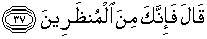37. Allah berfirman: "(Kalau begitu) maka sesungguhnya kamu termasuk orang-orang yang diberi tangguh,