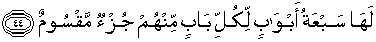 44. Jahannam itu mempunyai tujuh pintu. Tiap-tiap pintu (telah ditetapkan) untuk golongan yang tertentu dari mereka.