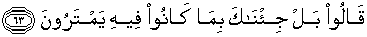 63. Para utusan menjawab: "Sebenarnya kami ini datang kepadamu dengan membawa azab yang selalu mereka dustakan.
