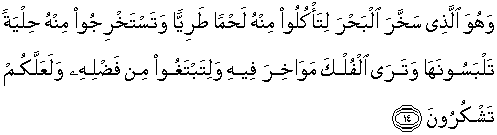 14. Dan Dia-lah, Allah yang menundukkan lautan (untukmu), agar