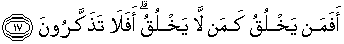17. Maka apakah (Allah) yang menciptakan itu sama dengan yang tidak dapat menciptakan (apa-apa) ?. Maka mengapa kamu tidak mengambil pelajaran.