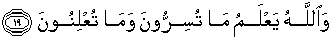 19. Dan Allah mengetahui apa yang kamu rahasiakan dan apa yang kamu lahirkan.
