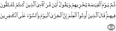 27. Kemudian Allah menghinakan mereka di hari kiamat, dan
