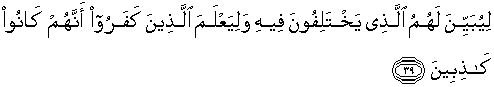 39. agar Allah menjelaskan kepada mereka apa yang mereka perselisihkan itu, agar orang-orang kafir itu mengetahui bahwasanya mereka adalah orang-orang yang berdusta.